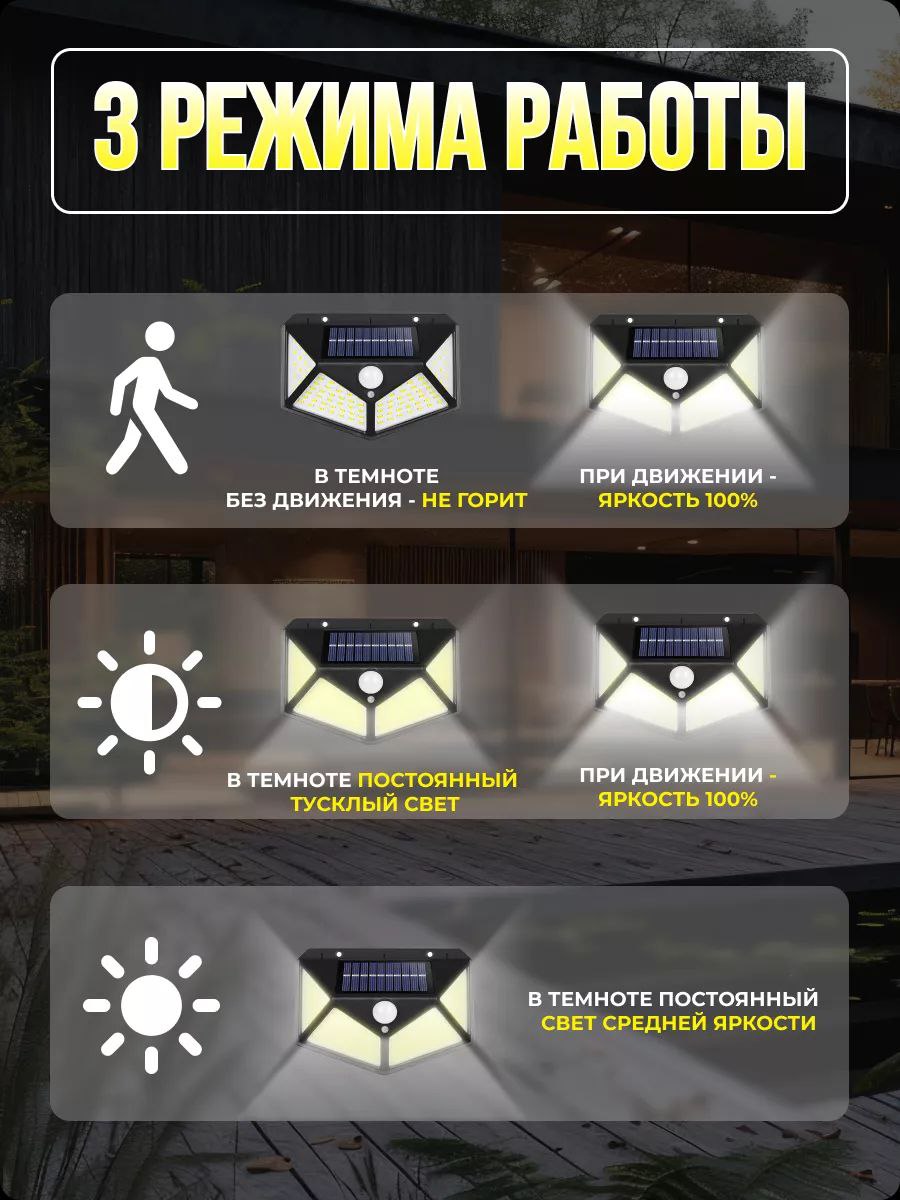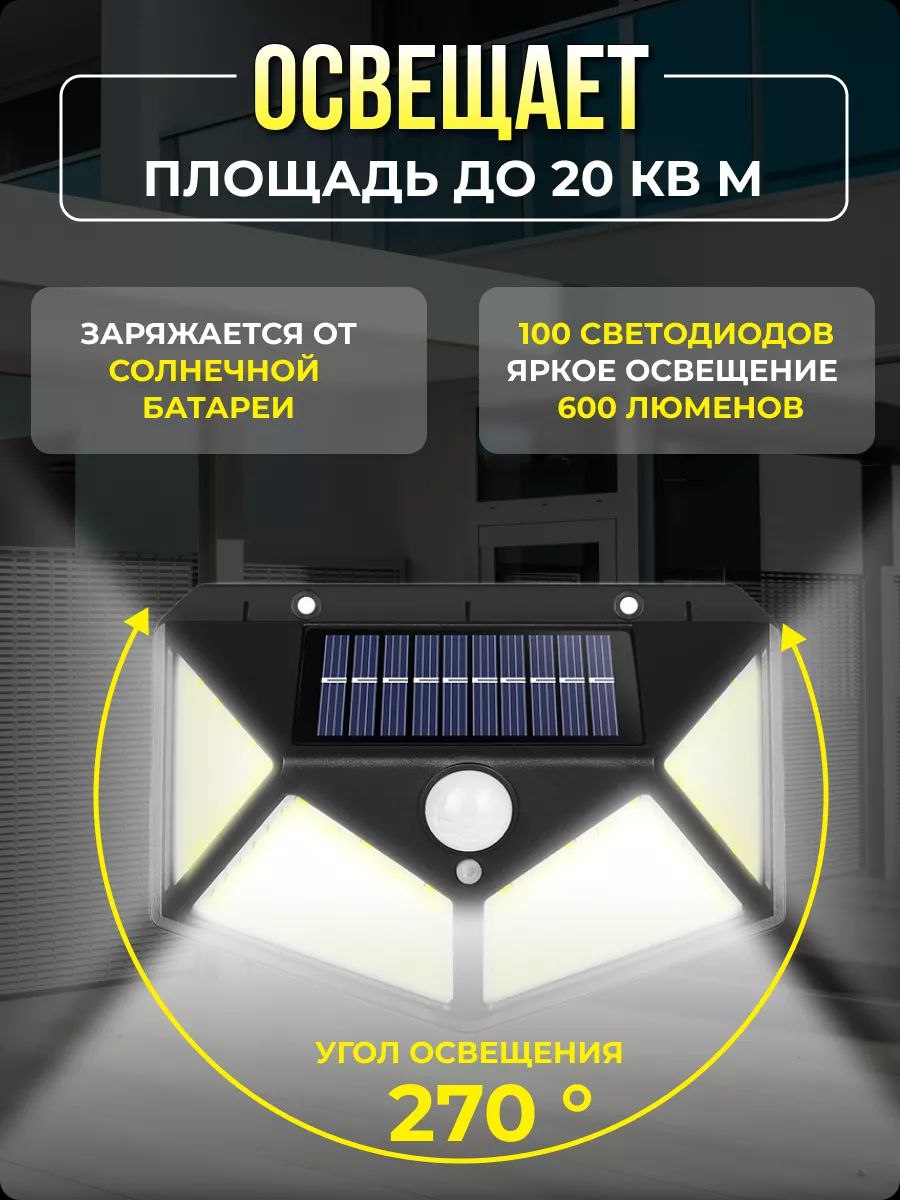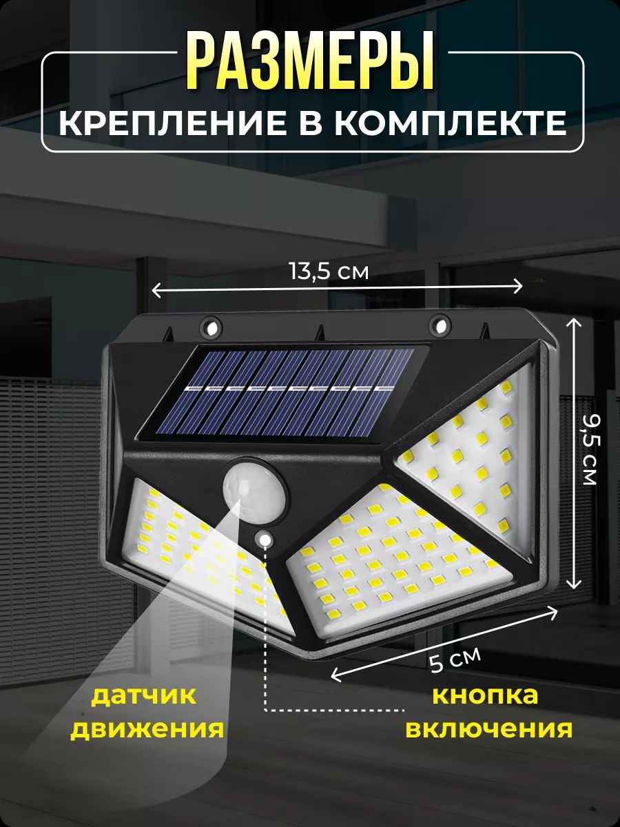 Светильник уличный на солнечных батареях, это идеальное решение для освещения вашего двора или участка. Этот светильник оснащен 100 светодиодами, обеспечивающими яркий световой поток в 600 лм, что делает его отличным выбором для создания безопасного и уютного пространства. Изготовленный из прочного abs-пластика, он способен выдерживать любые погодные условия и имеет степень пылевлагозащиты IP65.